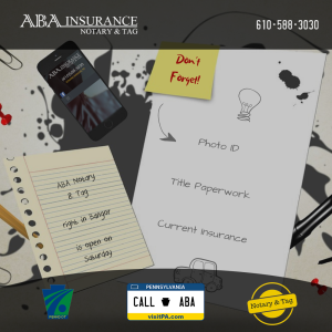 New year, new (used) car? At ABA Notary we have all of your paperwork covered. Come to ABA Notary for everything from plates to title transfer, and even car insurance! Please call ahead to ensure that you have all the documentation and paperwork needed 610-588-3030.
