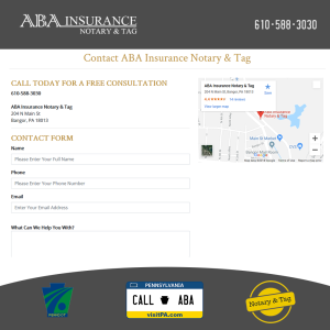 Are you shopping around to see about insurance and policies? Fill out a contact form, we would be glad to speak with you to see how we can help or earn your business. http://abanotary.com/contact.html or call 610-588-3030